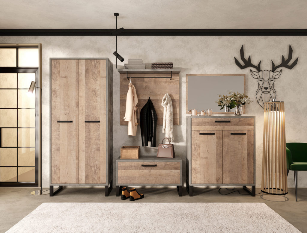 Корпус виконаний в оригінальному декорі «вудкон», що імітує бетон нейтрального світло-сірого відтінка. Фасади виконані з ЛДСП, у теплому декорі «дуб гранж пісочний», що передає м’якість деревини.
