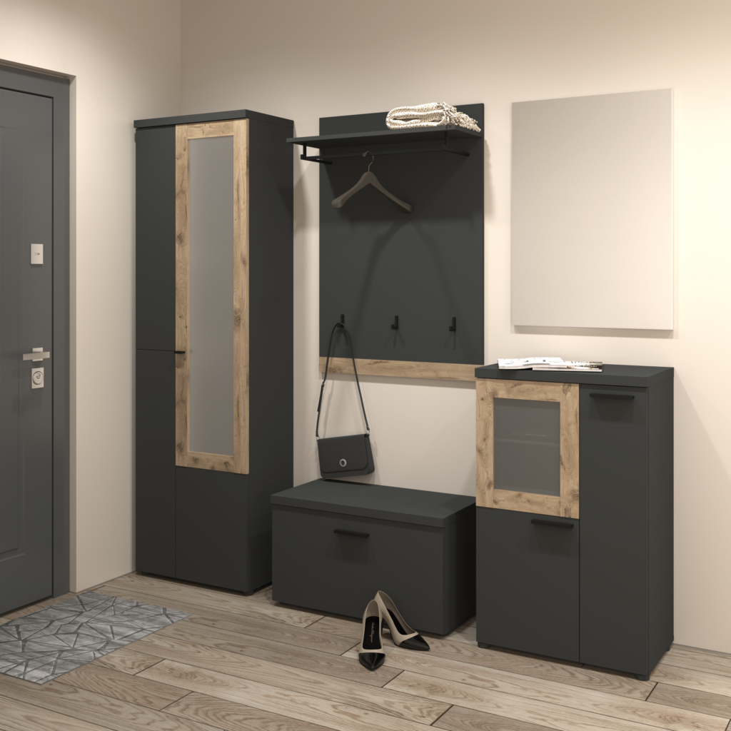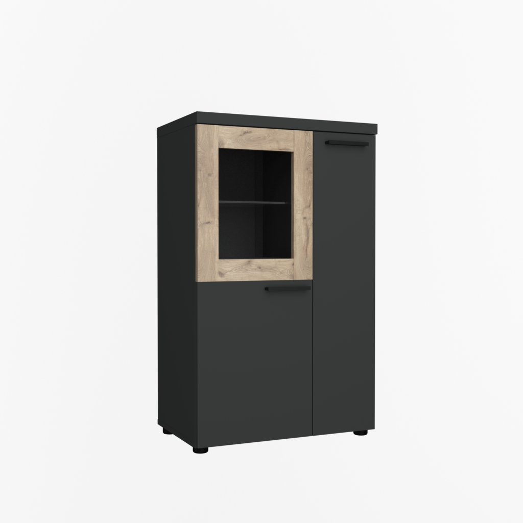 Практичний та місткий, стриманий та лаконічний комод Модена вдало поєднує в собі функціональність та незвичайний сміливий дизайн. Він відмінно справляється не тільки зі зберіганням речей, але й ефективно виконує естетичну функцію – ваш будинок стає ще стильнішим та затишнішим. Виготовлений у трендових кольорах антрацит/дуб вікінг.