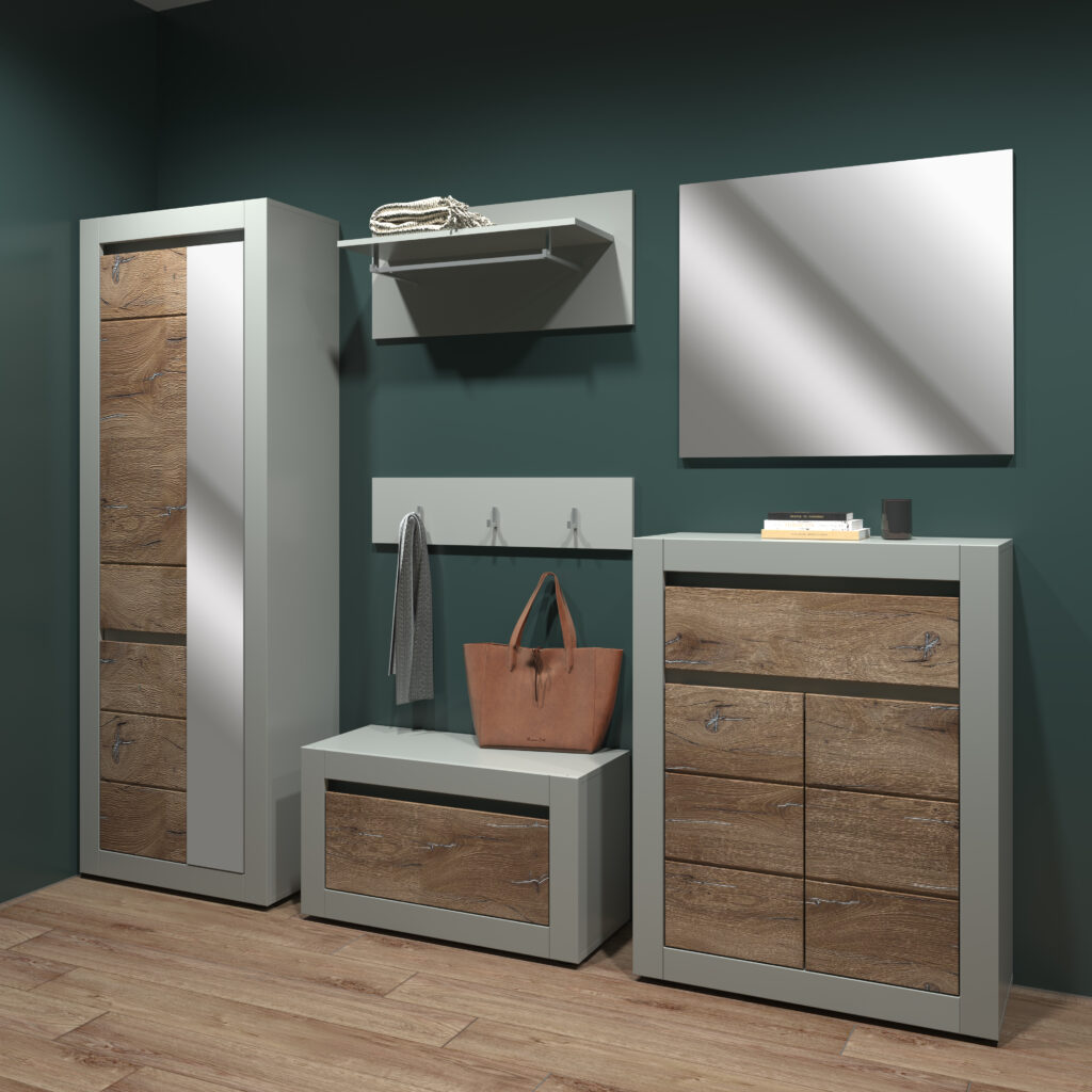 Практичний та лаконічний комод Катанія 2Д1Ш поєднує в собі функціональність та стильний дизайн. Він відмінно справляється не тільки зі зберіганням речей, але й ефективно виконує естетичну функцію – ваш будинок стає ще затишнішим. Комод з передпокою Катанія виконаний у трендових кольорах шиншила сіра/дуб флагшток, який цікаво доповнить ваш інтер”єр та розбавить монотонні кольори.