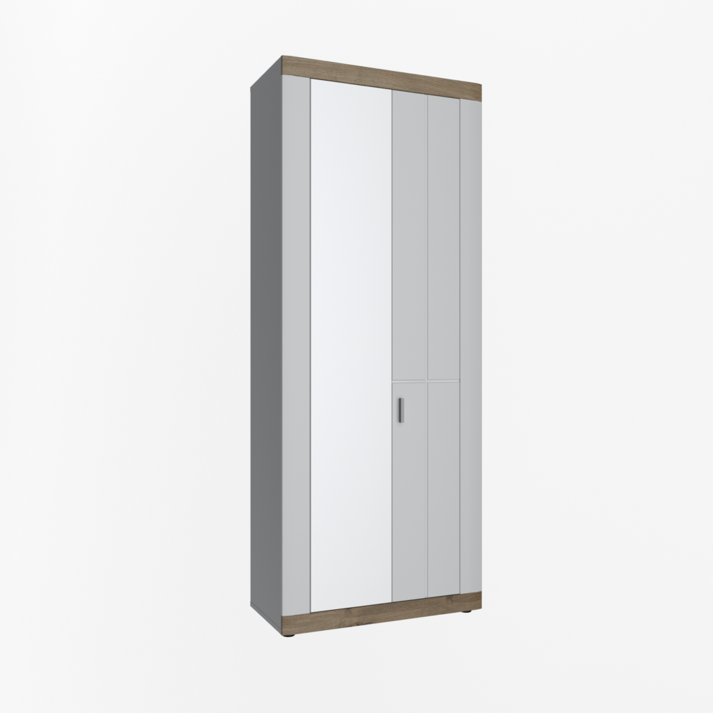 Шафа 2Д Санторіні використовується зберігання одягу. Ця шафа універсальна і підійде для будь-якої зони вашої оселі. Відмінно справляється не тільки зі зберіганням речей, але й ефективно виконує естетичну функцію – ваш будинок стає ще стильнішим. Вона оснащена якісною фурніторою та висувним вішаком. Виготовлена у трендових кольорах білий/дуб вікінг.