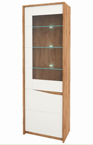 Глянцевий білий колір фасадів у поєднанні з корпусом дуб крафт табако придає кімнаті легку і затишну атмосферу.