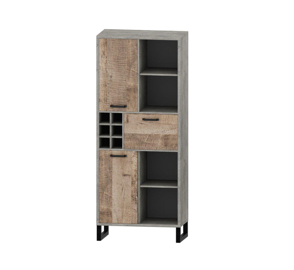 Корпус виконаний в оригінальному декорі «вудкон», що імітує бетон нейтрального світло-сірого відтінка. Фасади виконані з ЛДСП, у теплому декорі «дуб гранж пісочний», що передає м’якість деревини.