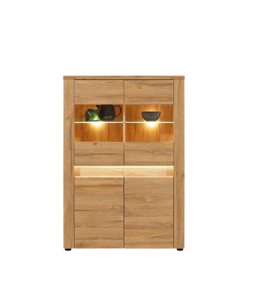 Изготавливается из ЛДСП в декоре «дуб гранд», что передает естественную красоту древесины. Особую привлекательность коллекции придают закругленные фасады, разделены декоративными рифлеными вставками из МДФ.В ящиках установлены телескопические направляющие, на дверях – петли с доводчиком. Широкий ассортимент независимых модулей Санди позволяет легко скомбинировать гостиную в нескольких вариантах, а также кабинет, столовую или прихожую.