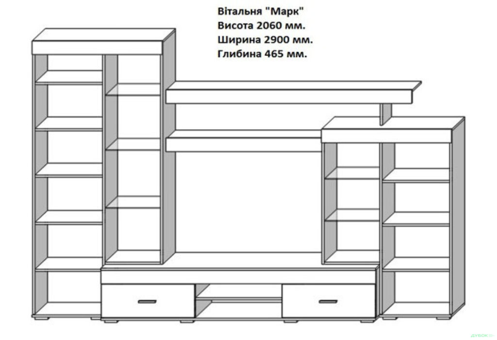 Вітальня «Марк» фабрики «Сокме» складається з основної стінки і додаткових супутніх елементів меблів.