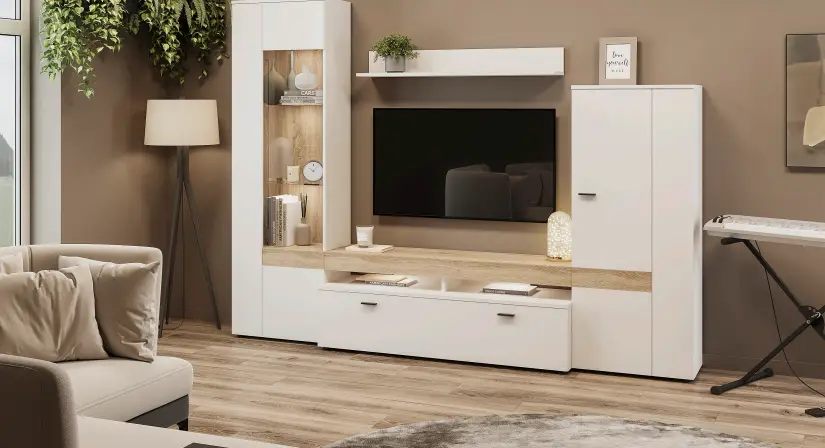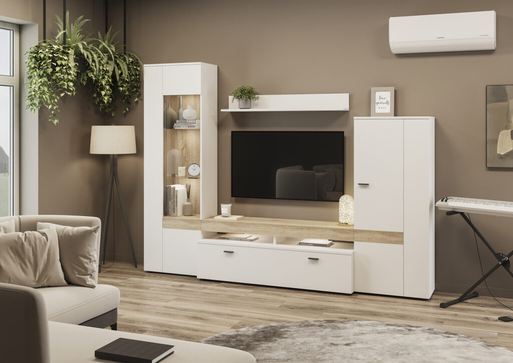 Вітальня Соренто вирізняється сучасною задумкою та спокійними кольорами. Комфортна у використаннні, де кожен елемент створений для максимально ефективної організації простору у вашій оселі. Компактні габарити дозволять обмеблювати приміщення невеликих розмірів. Дана вітальня представлена у сучасних кольорових рішеннях: «дуб сонома + білий», вона чудово впишеться у вашу оселю та стильно доповнить її. Продається комплектом.